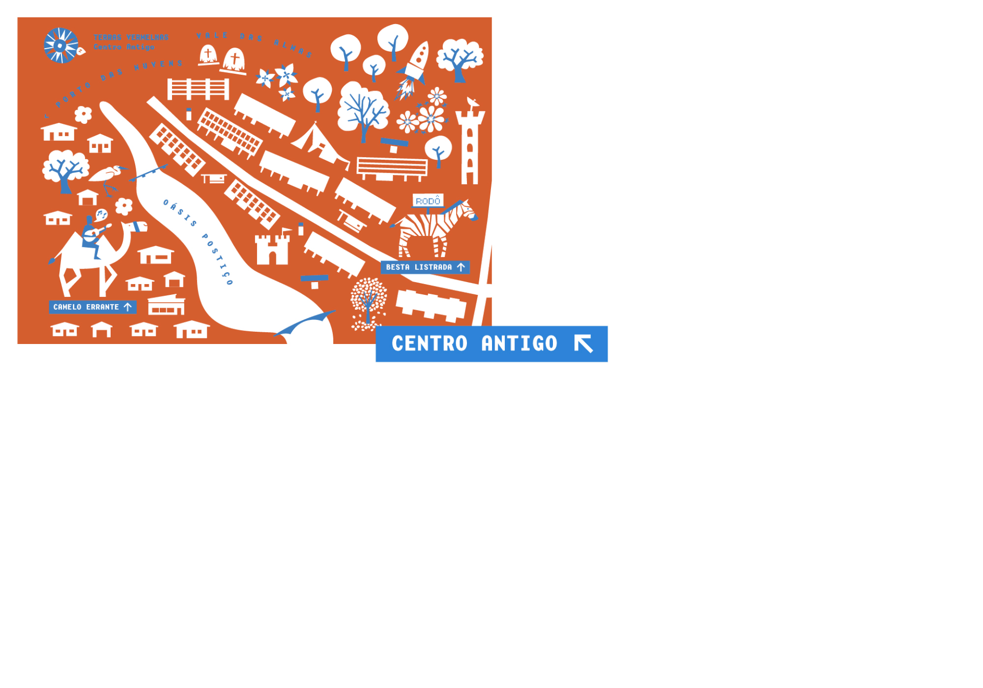 Inspired by maps from the great navigations era, the postcards work as an invitation to find your treasure in the city, clearing parched prairies, green peninsulas and secret zones, finding underwater ruins, imaginary beasts and various gems offered by the red lands in the heart of Brazil.